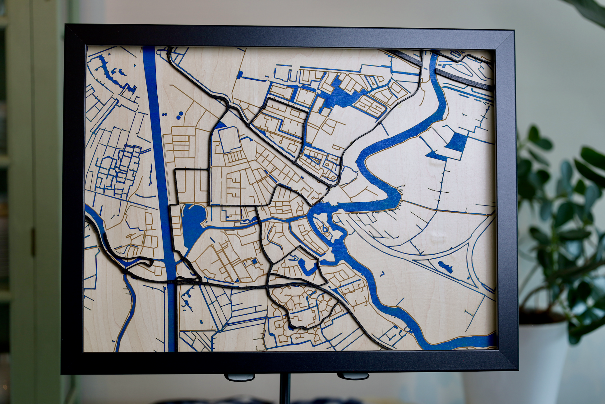 Houten 3D Kaart van Weesp met Glasplaat