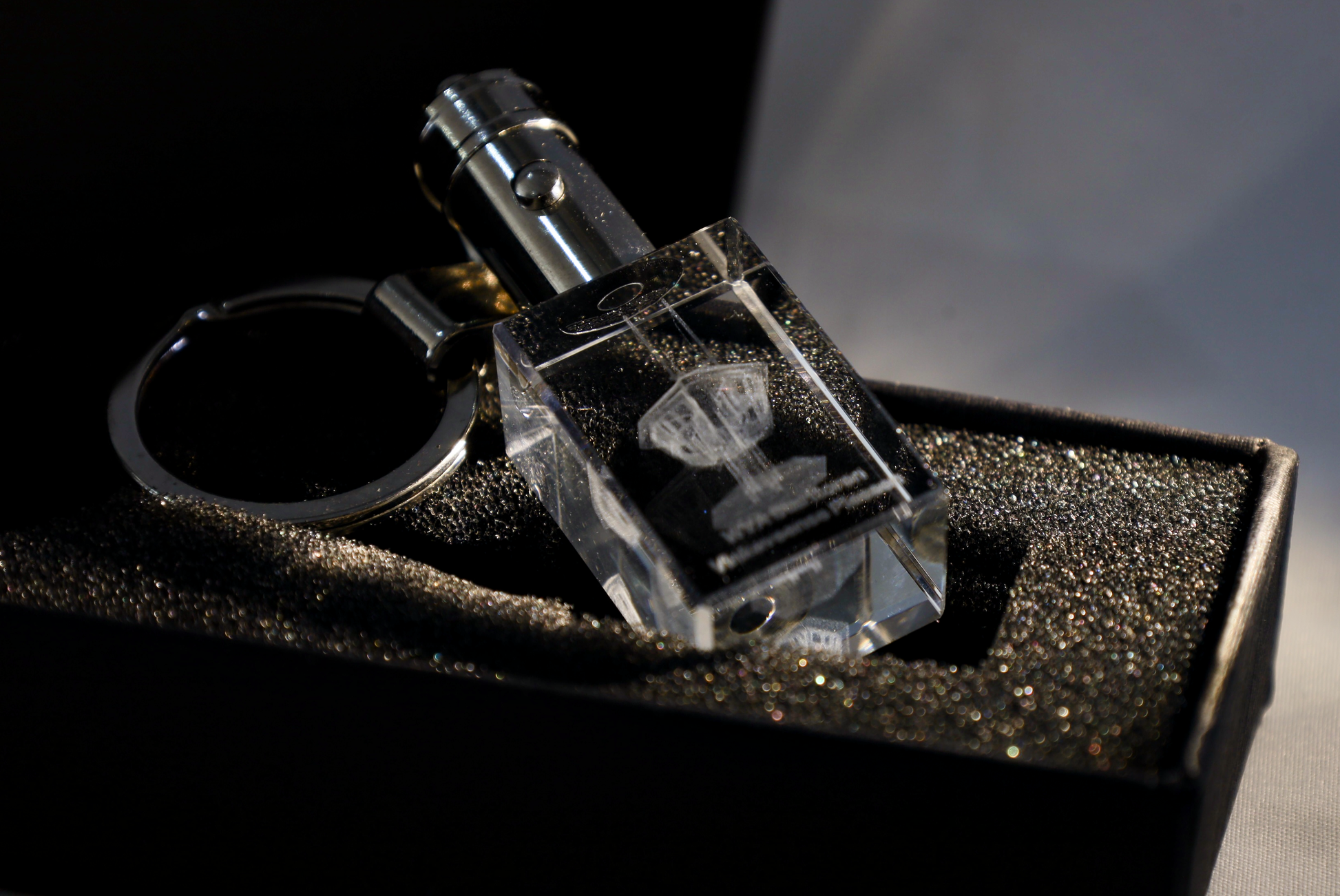 Extra bijzonder: in de sleutelhanger is een subtiel LED-lampje geïntegreerd. Zet je het lampje aan met het knopje, dan licht het kristal van binnenuit op en lijkt de 3D-gravure als het ware te gaan zweven. De details worden dan haarscherp en indrukwekkend zichtbaar.
