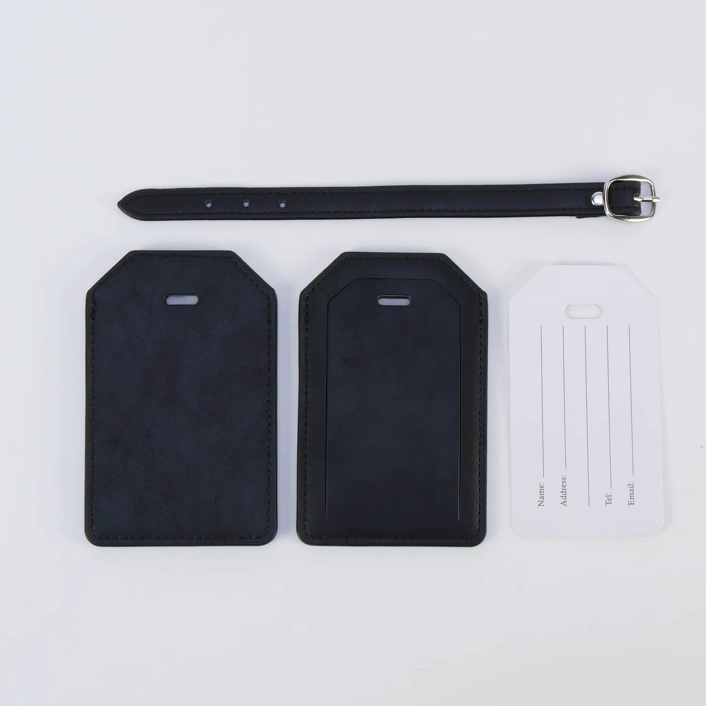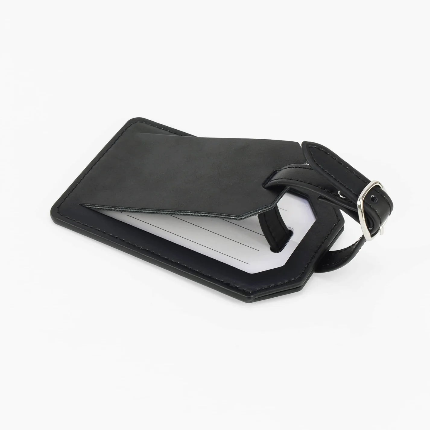 Luxe Reiskofferlabel met Privacyklep Zwart (inclusief 2 kanten graveren!)