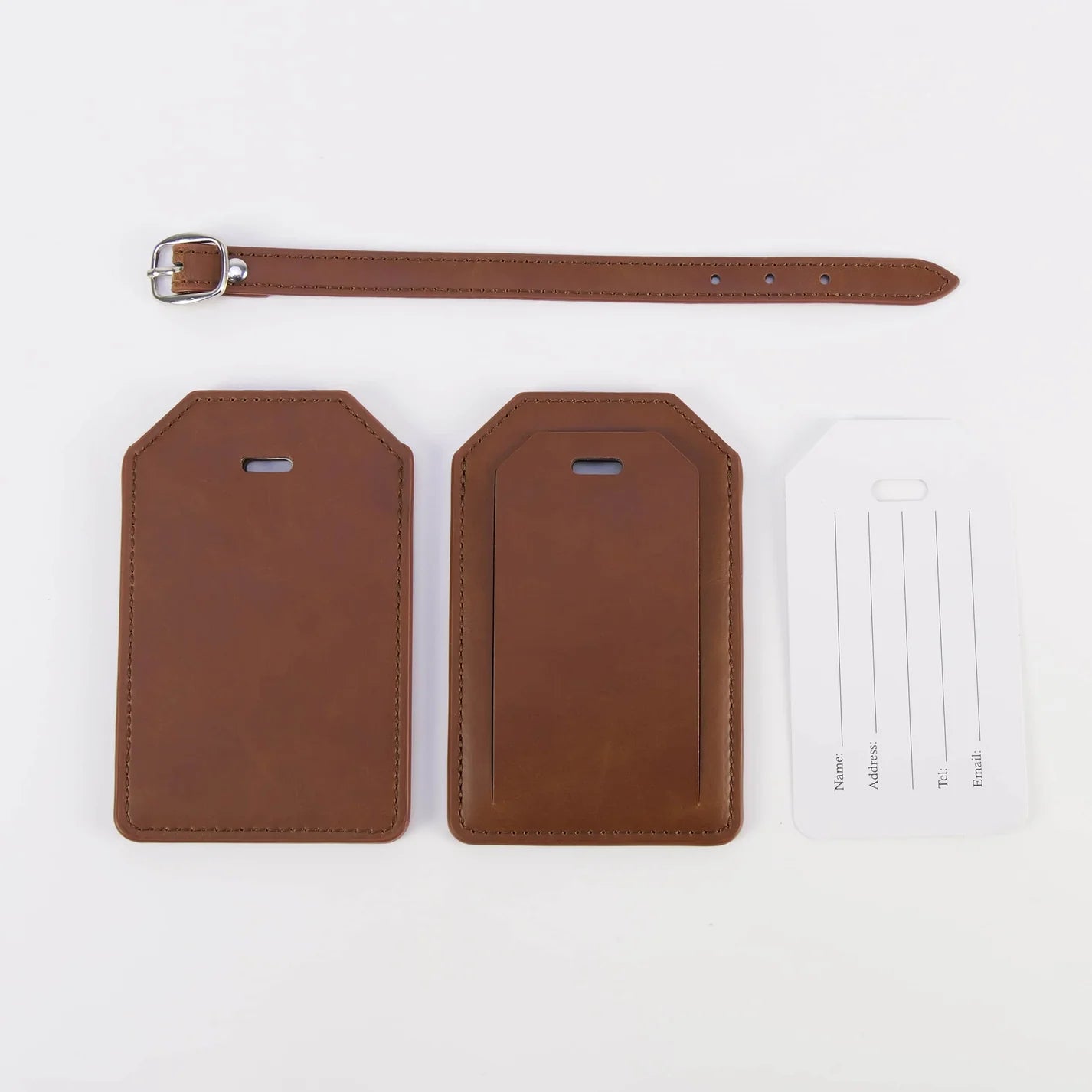 Luxe Reiskofferlabel met Privacyklep Bruin (inclusief 2 kanten graveren!)