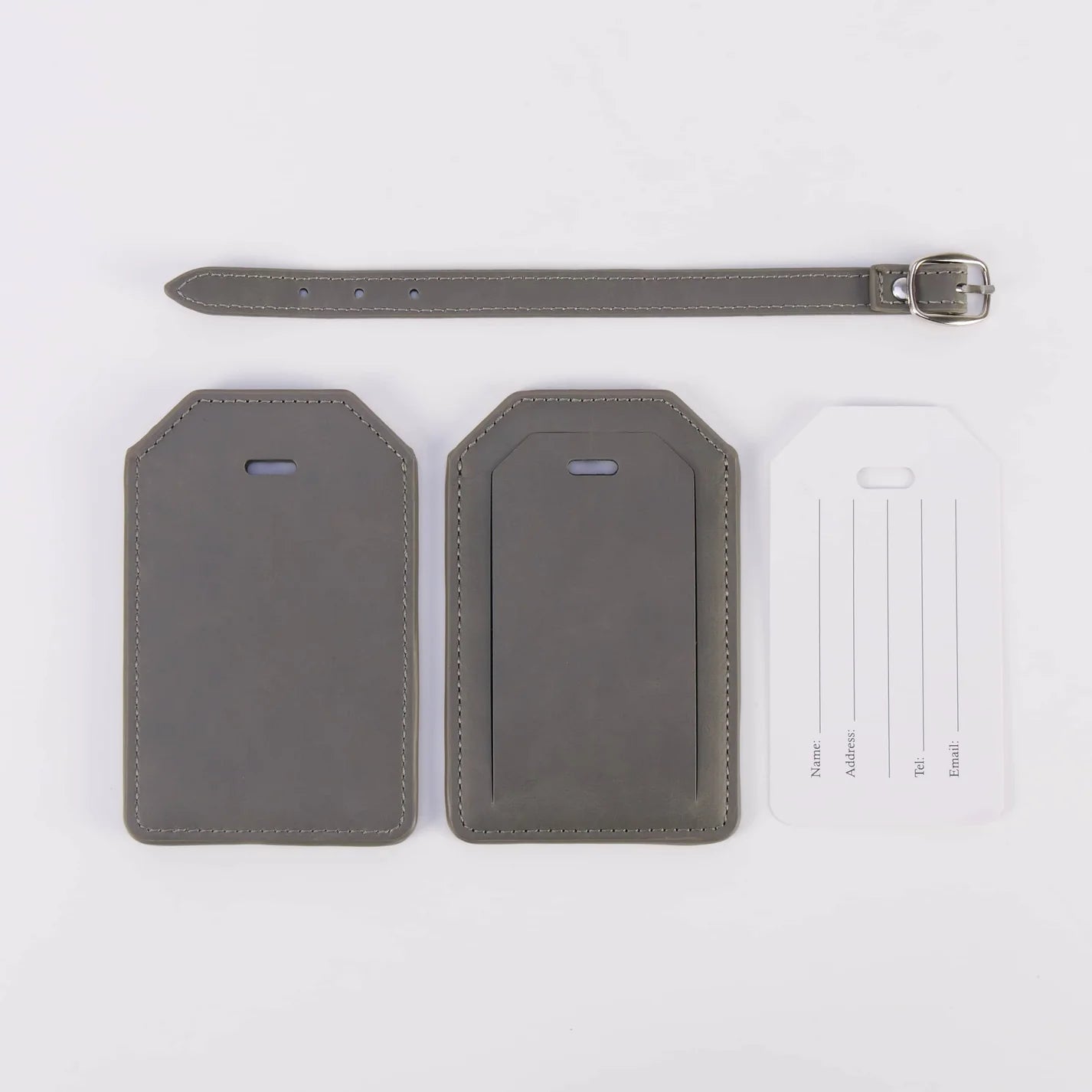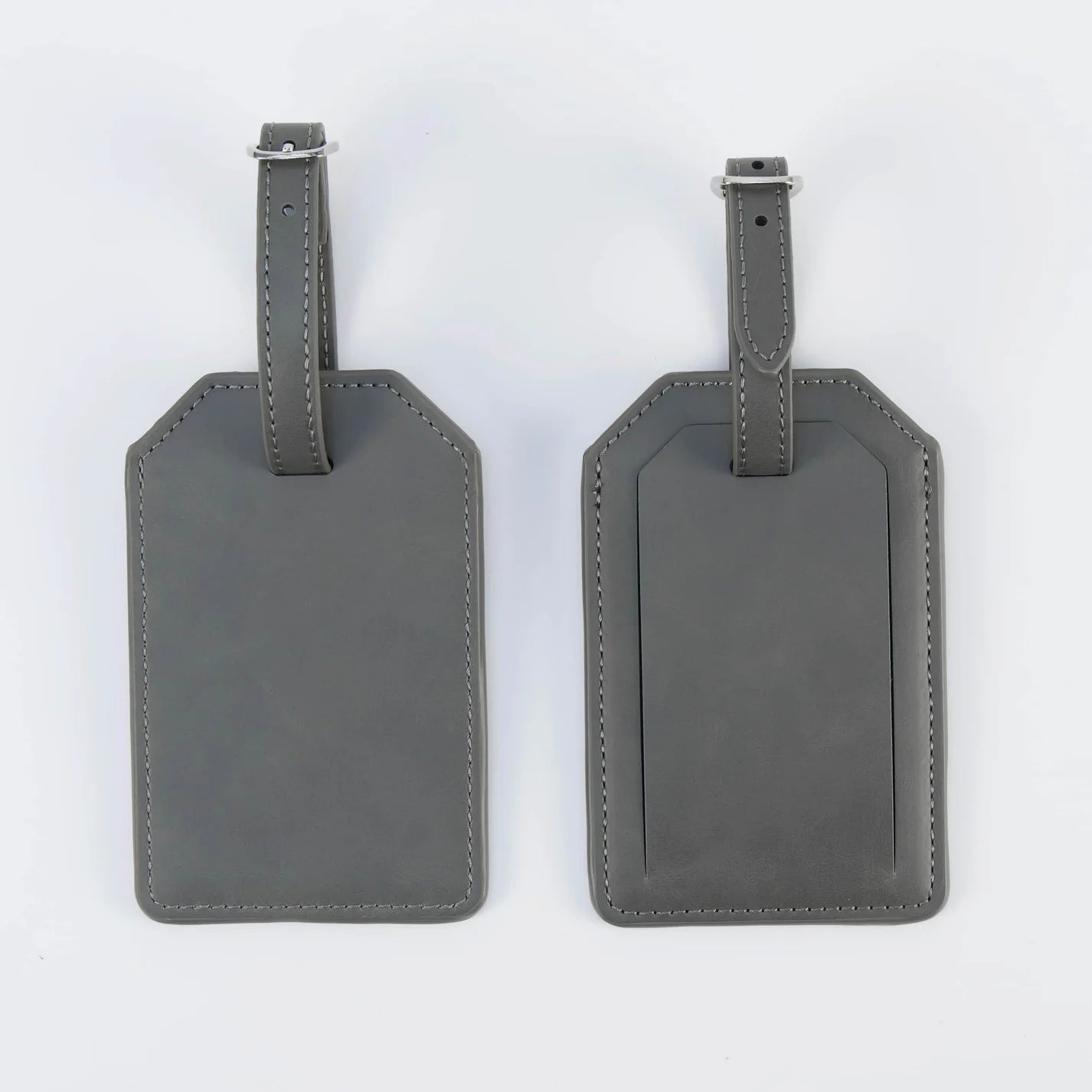 Luxe Reiskofferlabel met Privacyklep Grijs (inclusief 2 kanten graveren!)